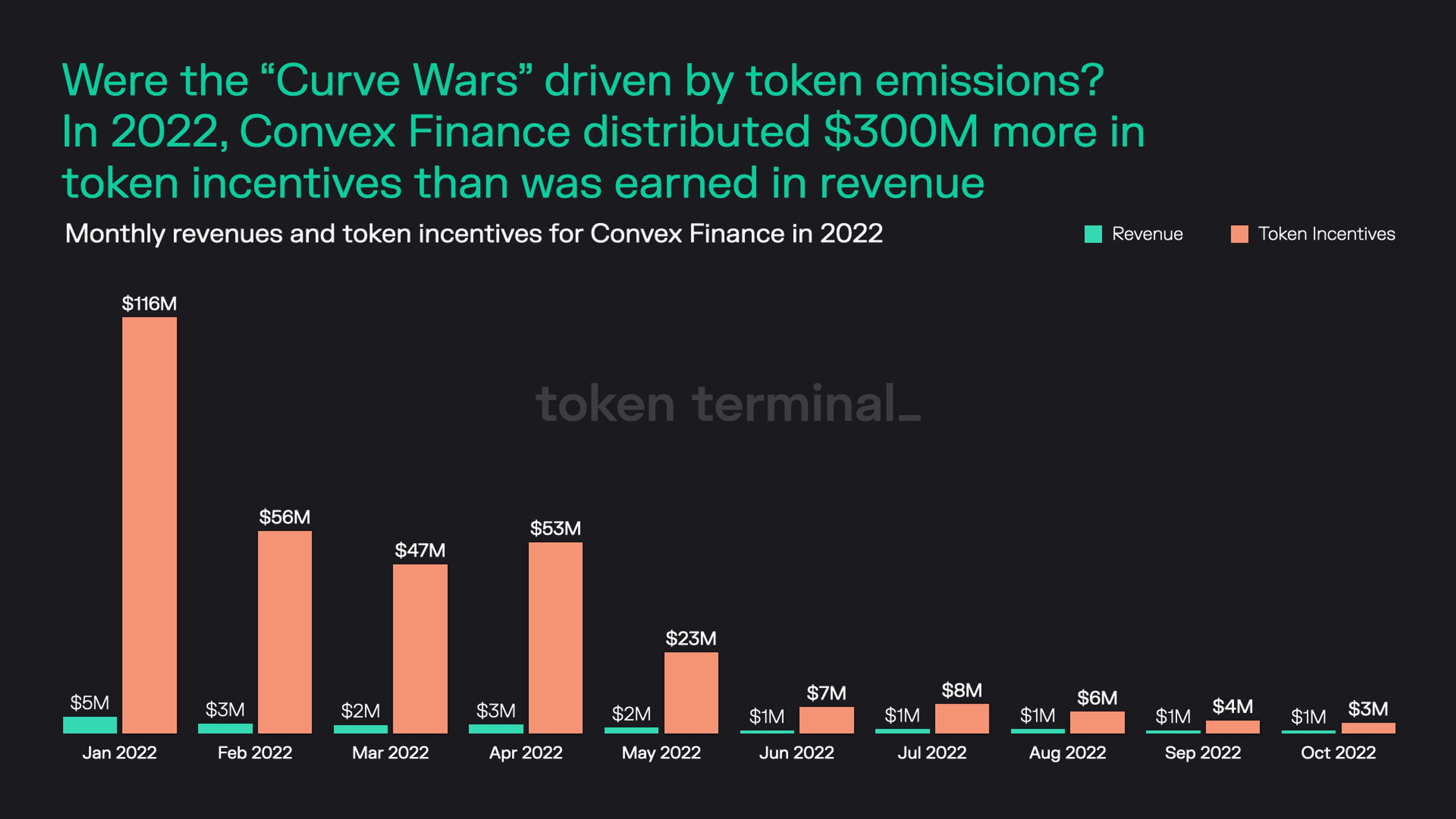 - Although Convex Finance’s revenues were heavily outpaced by token incentives in the beginning of the year, token emissions have started to slow down due to their tokenomics model.